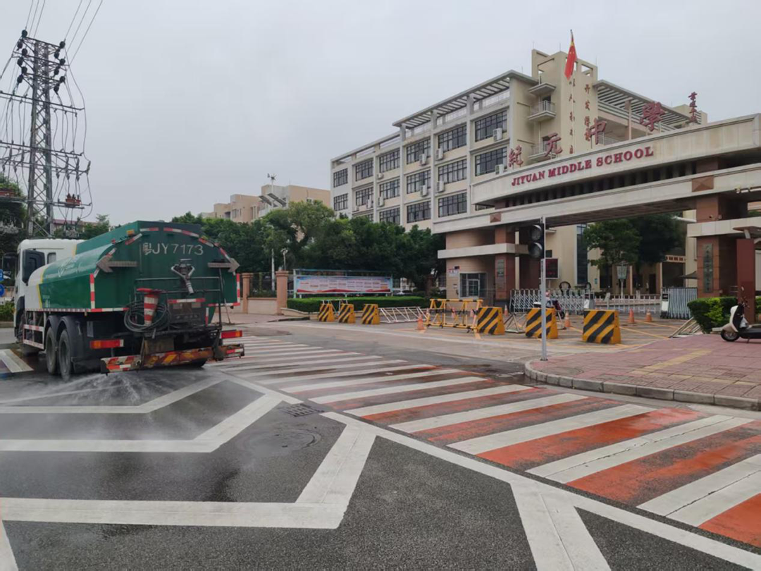 洁净清爽的环境同样不可或缺。江门城管加强考场周边环境卫生保洁力度,提前对周边道路“全覆盖”深度清洗。高考期间更增人手、延时长、提频次,每个考点周边配置定岗保洁员,对地面垃圾杂物不间断巡回清扫,垃圾收集设施“日产日清”,确保路面无污垢、无积存垃圾。